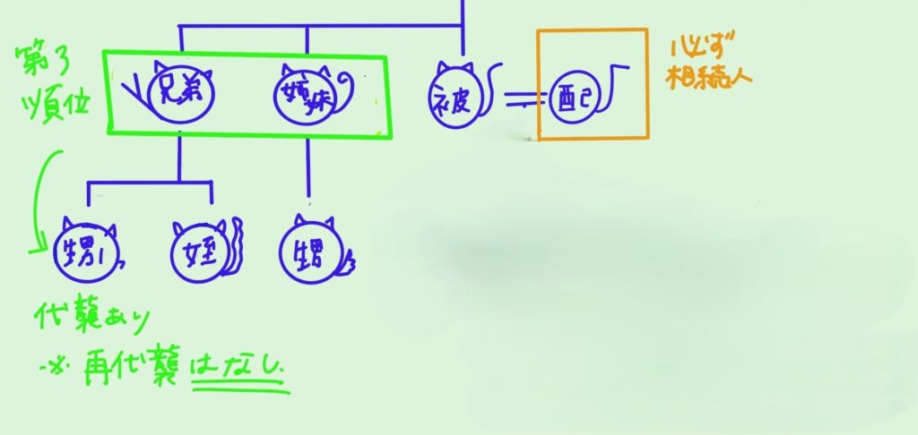 第3順位は兄弟姉妹(代襲相続あり・再代襲相続なし)