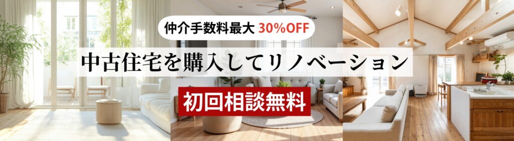 仲介手数料を最大30%割引。さらに、リフォーム瑕疵保険も加入可能で施工後も安心です。